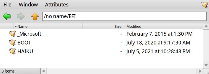 Once you've identified the partition you'll want to right-click on the desktop, navigate to Mount in the menu and then click on the partition. Mount it Read/Write or you won't be able to make changes. Once you open this partition in Tracker you should see a directory called EFI, and under that (assuming you have Windows installed) one called Microsoft.